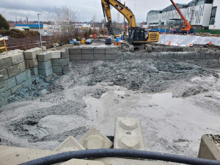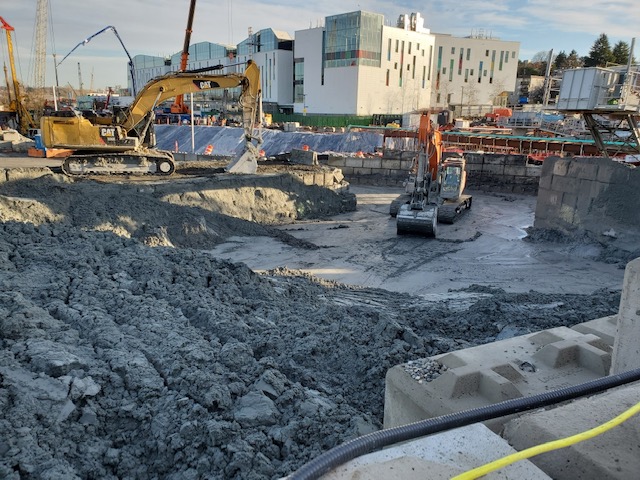 Street-level construction and excavation occurs in the blocks where stations will be constructed, and at each end of the line. Traffic decking is being built in the station blocks on Broadway to allow people to travel through the corridor. A number of properties in station blocks are being used for off-street work and storage areas to support construction of the underground stations. This helps keep construction activity off Broadway and adjacent streets as much as possible to mitigate disruption and manage safety for people visiting or traveling through the area.