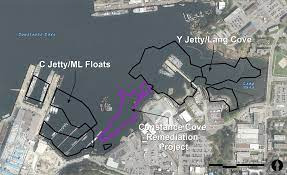 The Central Constance Cover Remediation Project removed contaminated sediments from the seabed in the center of Constance Cove in Esquimalt Harbour.